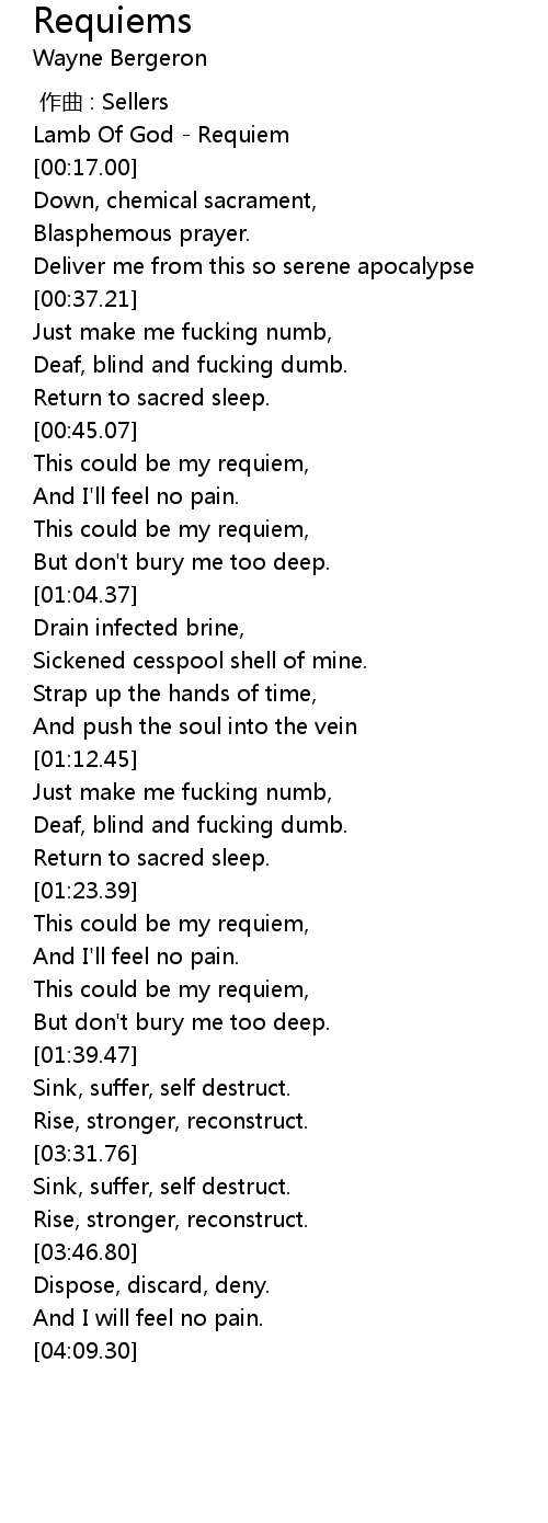 | [01:14.88] | Deaf, blind and fucking dumb. |