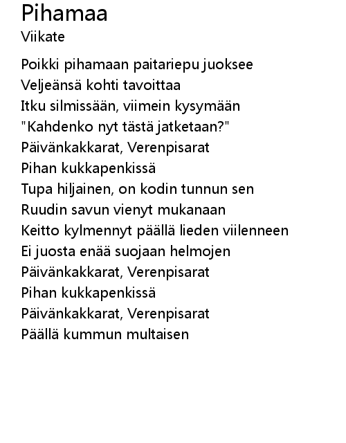 | 歌曲 | Pihamaa |
