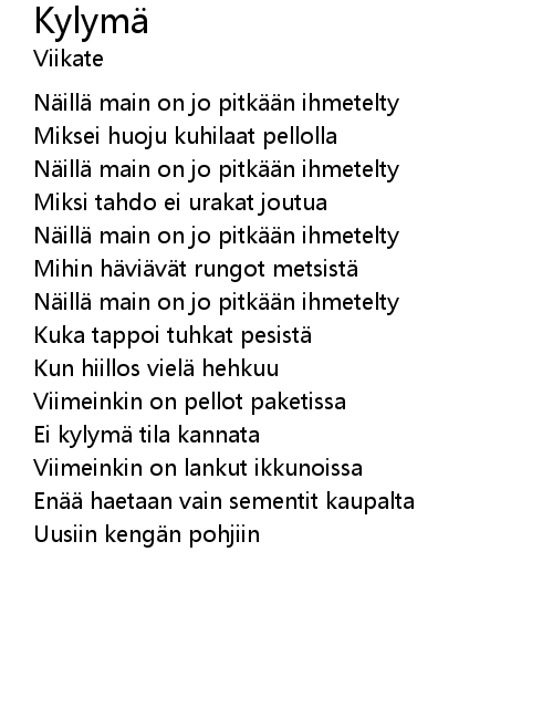 | 歌曲 | Kylymä |