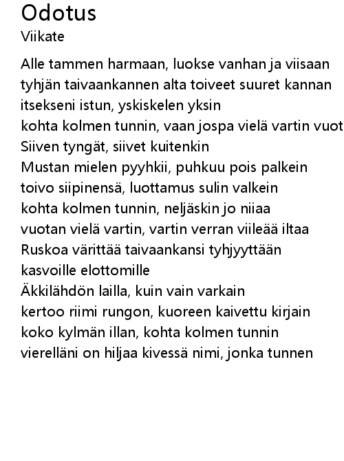 | vuotan vielä vartin, vartin verran viileää iltaa | |