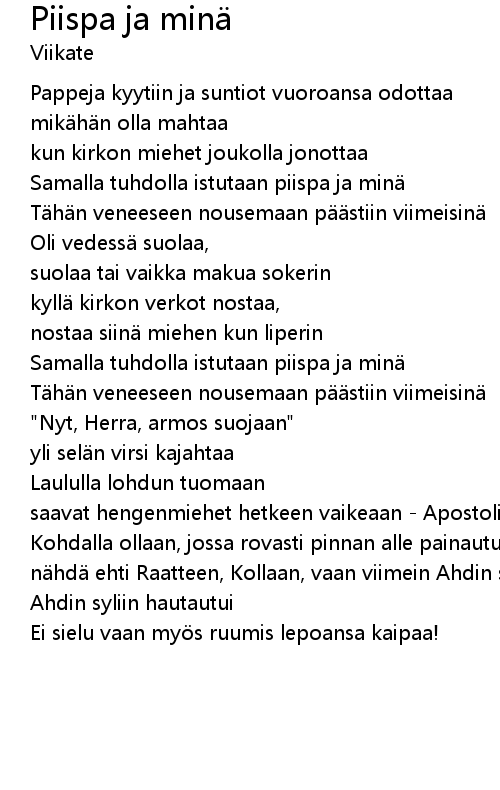 | 歌曲 | Piispa ja minä |