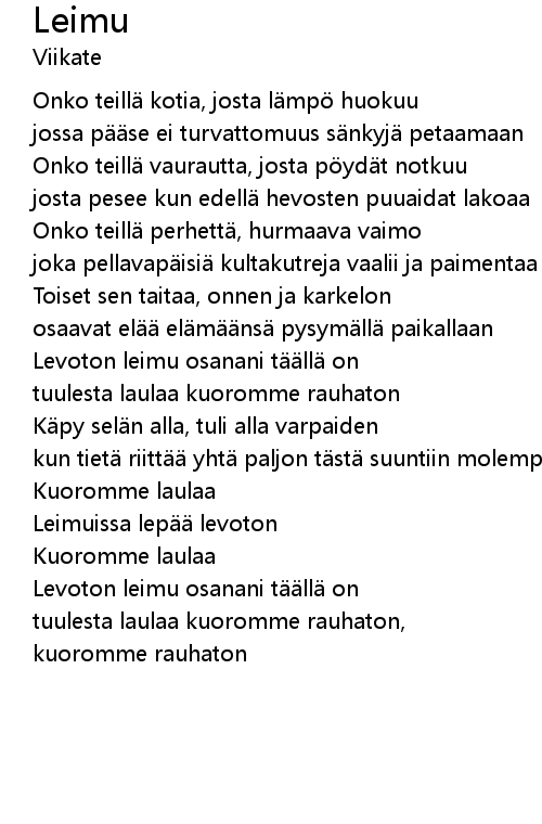 | josta pesee kun edellä hevosten puuaidat lakoaa | |