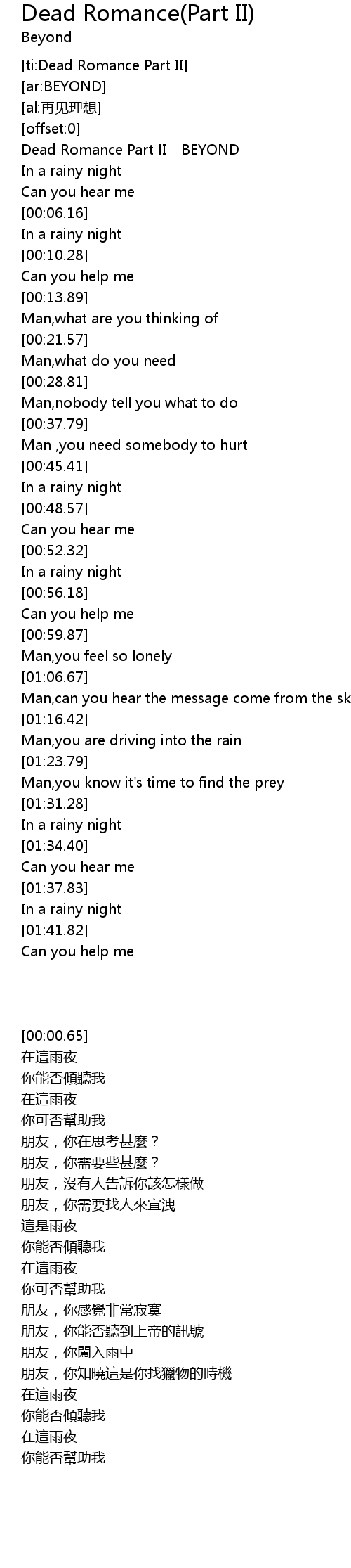 | [00:00.65] | Dead Romance Part II - BEYOND |