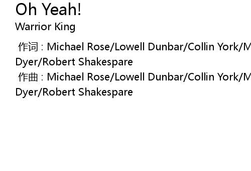 | [00:00.000] | 作词 : Michael Rose/Lowell Dunbar/Collin York/Mark Anthony Dyer/Robert Shakespare |