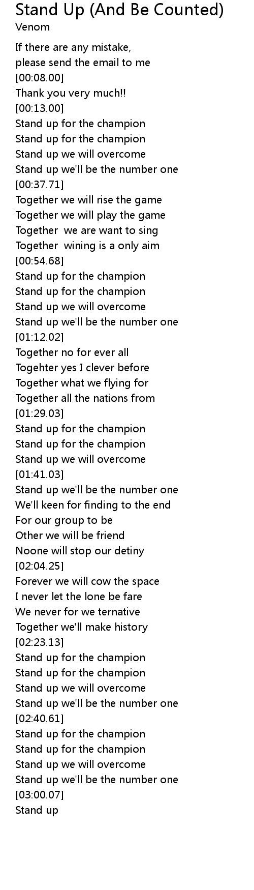Stand up for the champion |
