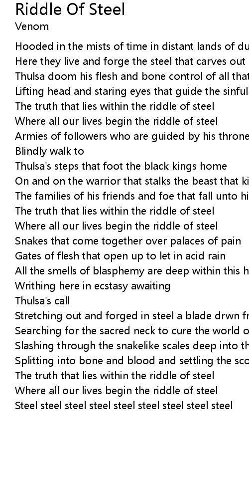 The truth that lies within the riddle of steel |