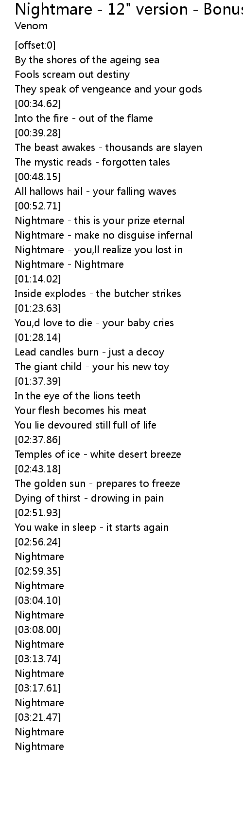 | [00:53.33] | Nightmare - this is your prize eternal |