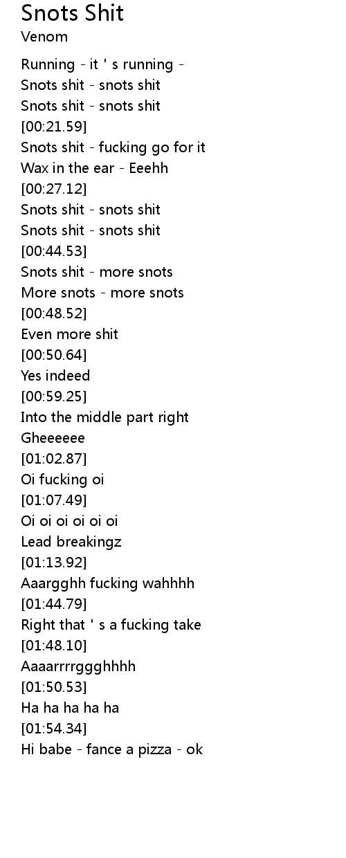 | [00:20.28] | Snots shit snots shit |