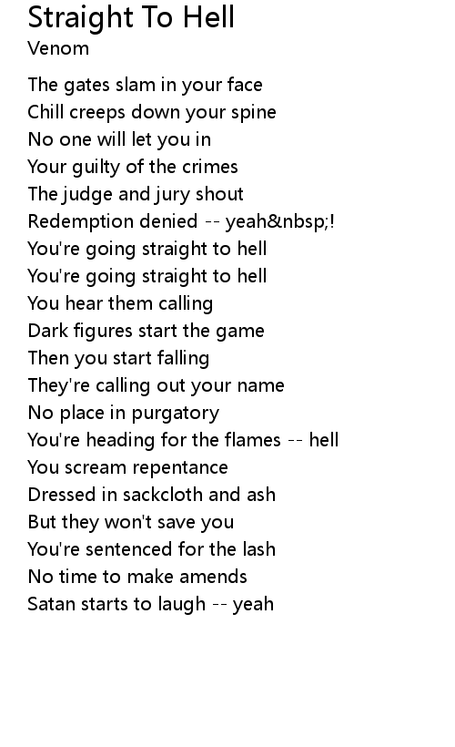 | You're going straight to hell | |