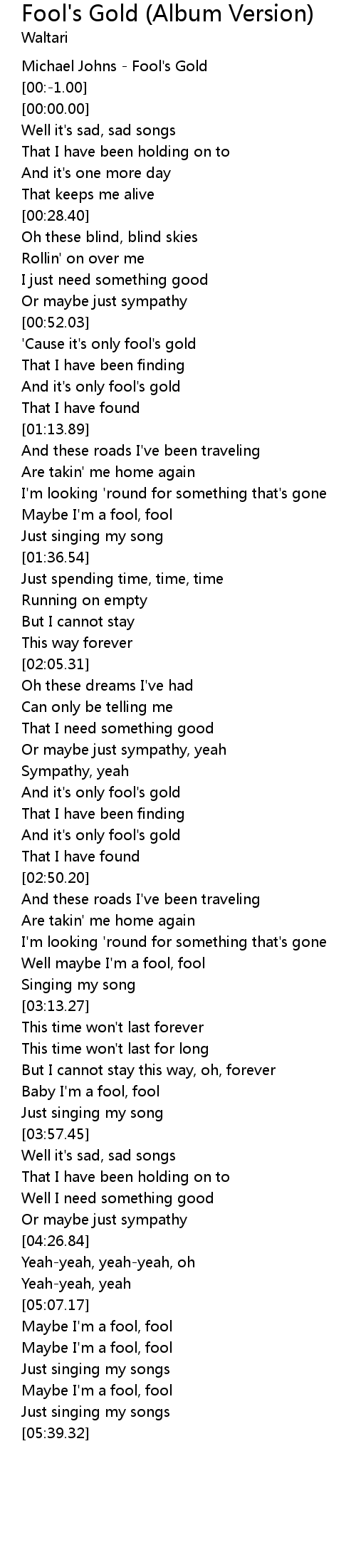 | [00:55.47] | 'Cause it's only fool's gold |
