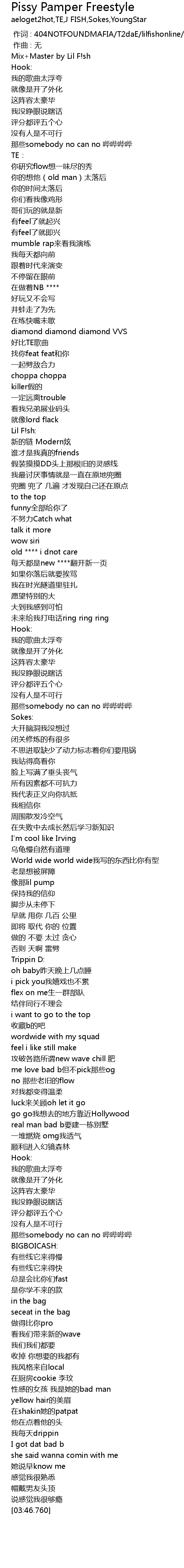 | 歌曲 | Pissy Pamper Freestyle |