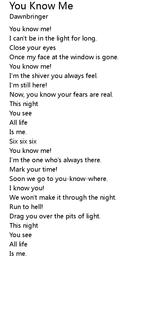 | 歌曲 | You Know Me |