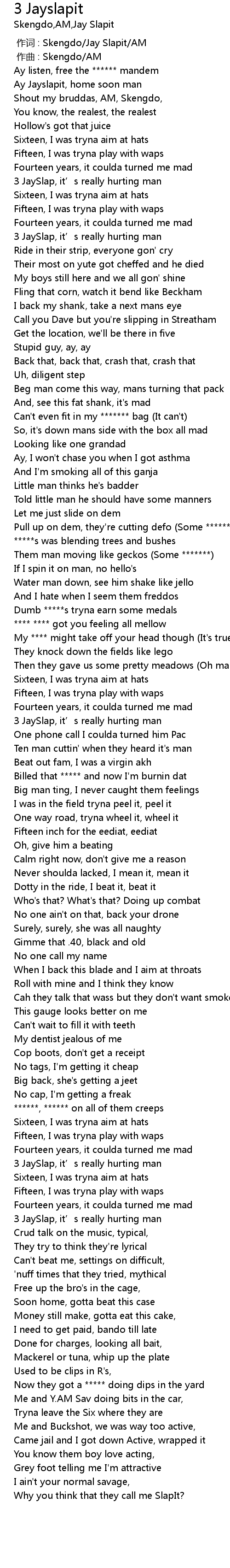 | [00:20.97] | 3 JaySlap, it' s really hurting man |