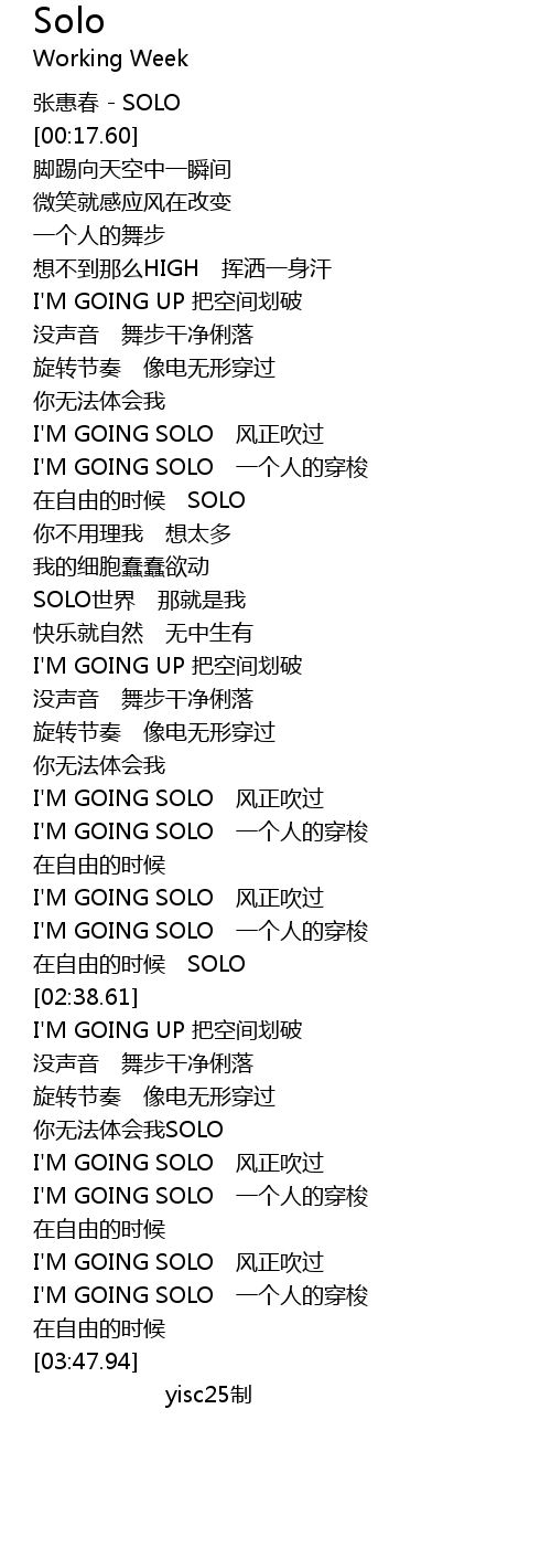 | [03:03.43] | 你无法体会我SOLO |