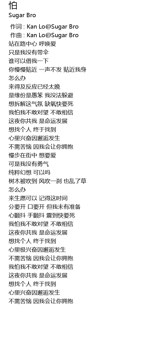 | [00:00.00] | 作词 : Kan Lo@Sugar Bro |