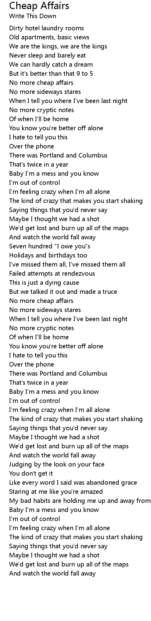 Like every word I said was abandoned grace |