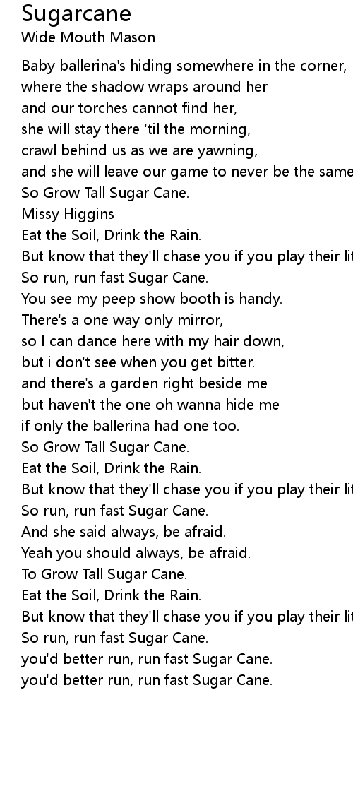 you'd better run, run fast Sugar Cane. |
