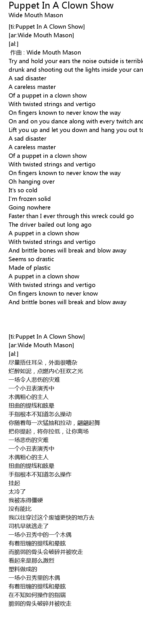 | [01:50.99] | 一场小丑秀中的一个木偶 |