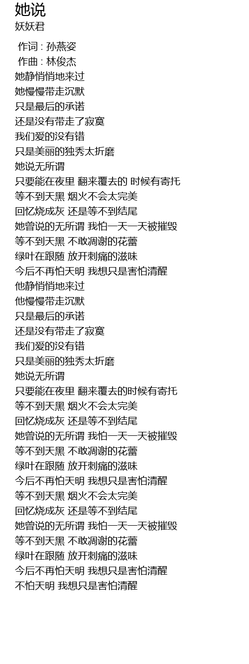 | [01:23.939] | 她曾说的无所谓 我怕一天一天被摧毁 |