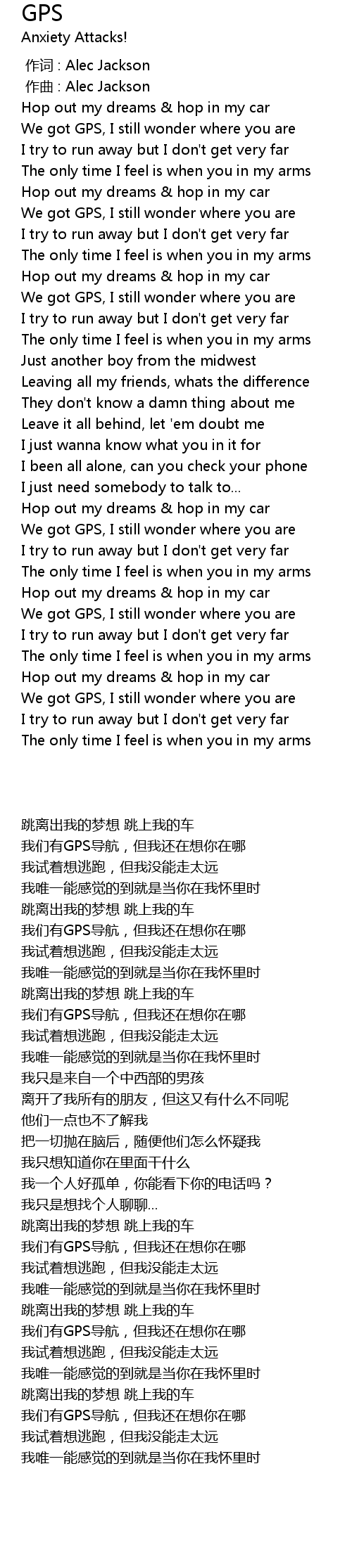 | [01:48.867] | 我们有GPS导航,但我还在想你在哪 |