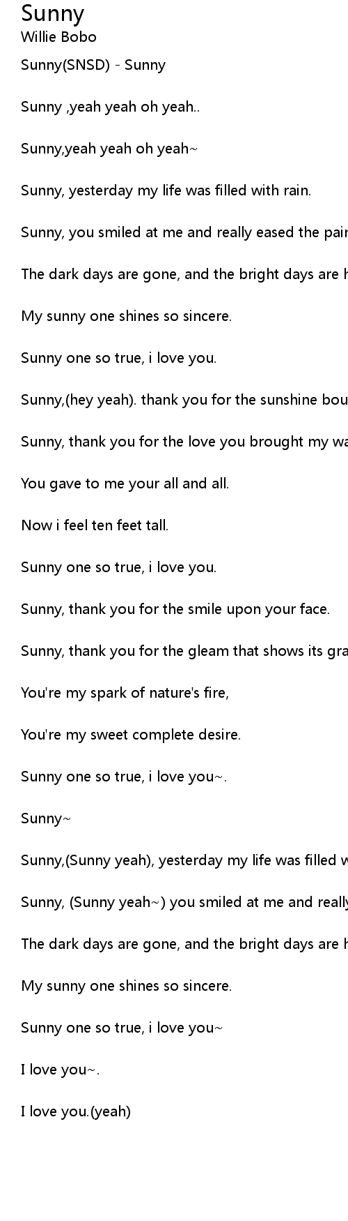 Sunny ,yeah yeah oh yeah..
