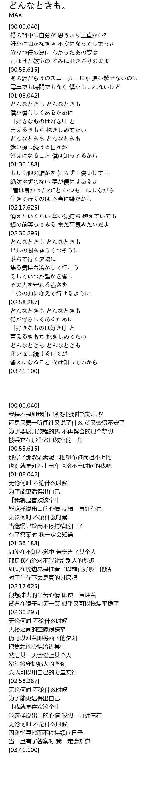 | [03:34.673] | 答えになること 僕は知ってるから |