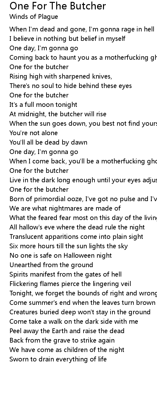 One For The Butcher 歌词