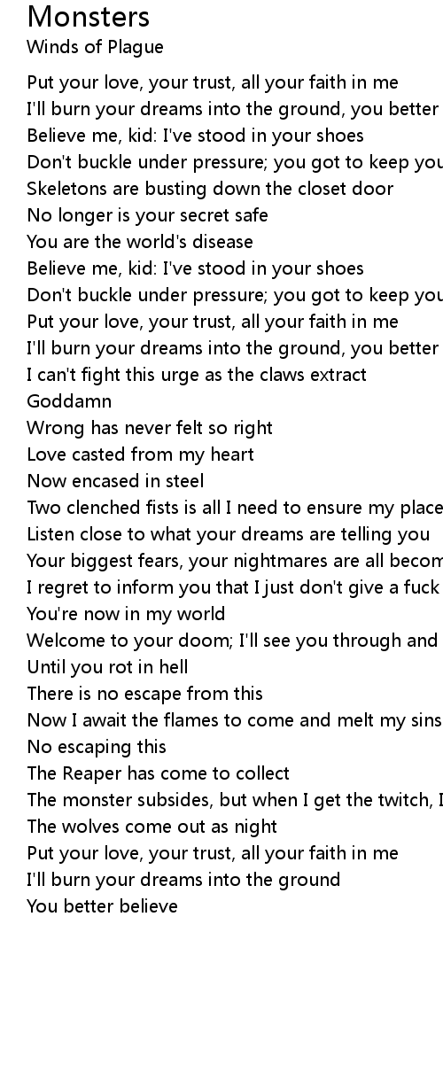The monster subsides, but when I get the twitch, I'll scratch the itch |