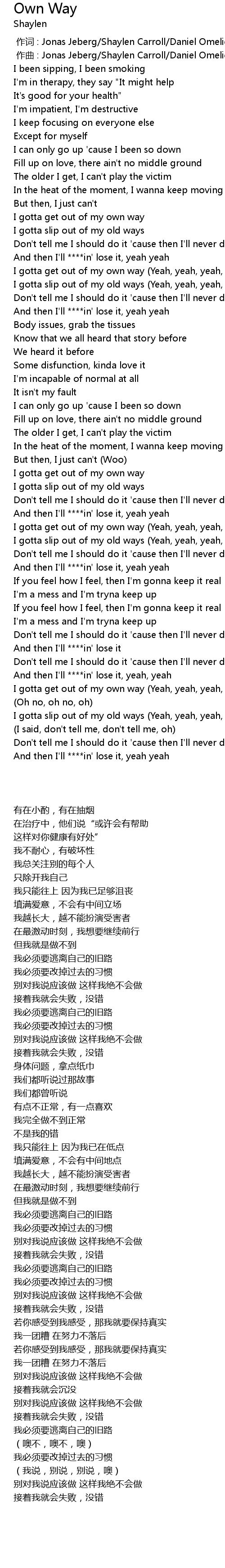 | [00:51.92] | I gotta get out of my own way Yeah, yeah, yeah, yeah |
