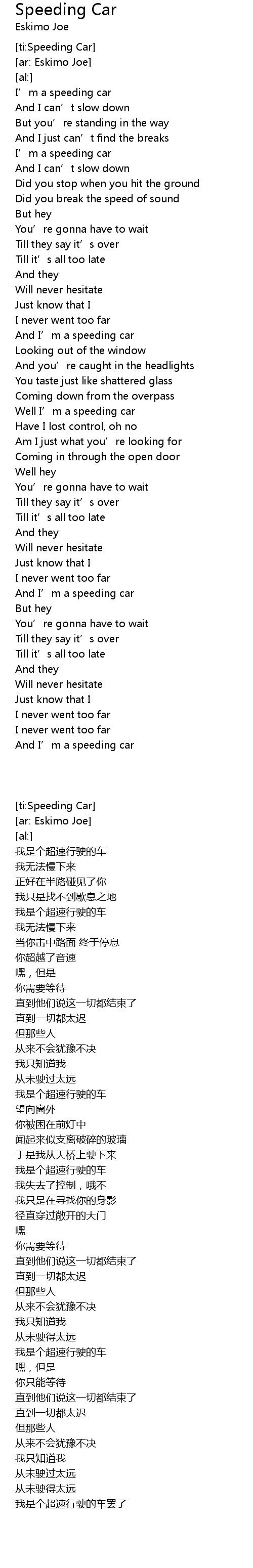 | [03:18.93] | 我是个超速行驶的车罢了 |