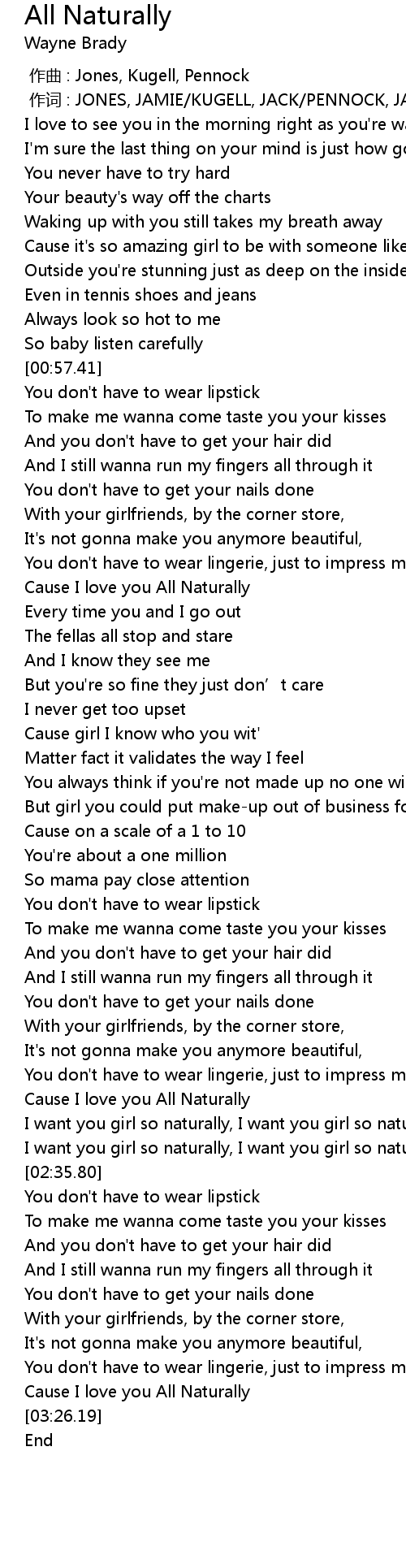 | [03:23.07] | Cause I love you All Naturally |