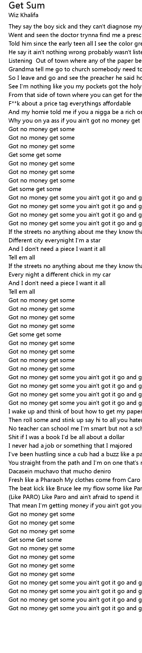 Got no money get some |