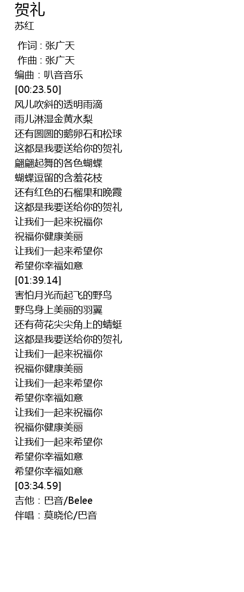 | [03:16.98] | 希望你幸福如意 |