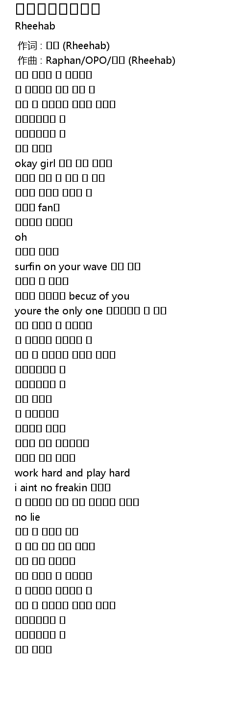 | [00:00.000] | zuo ci : Rheehab |
