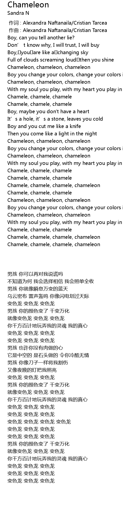 | [00:30.195] | Chameleon, chameleon, chameleon |