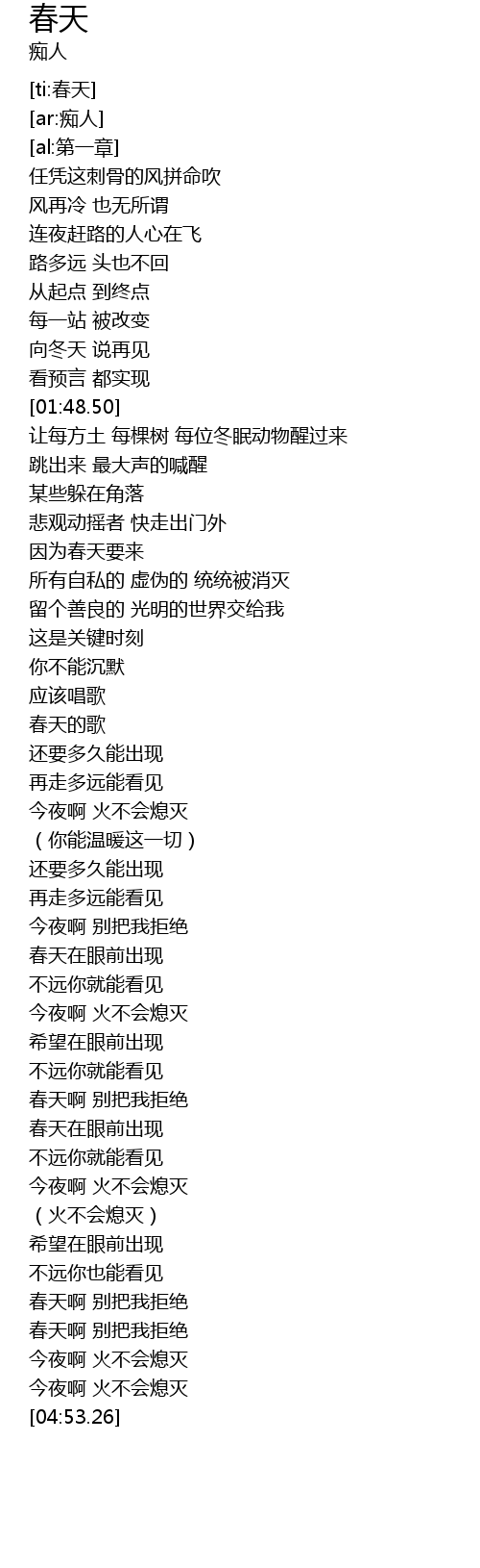 | [04:27.31] | 春天啊 别把我拒绝 |