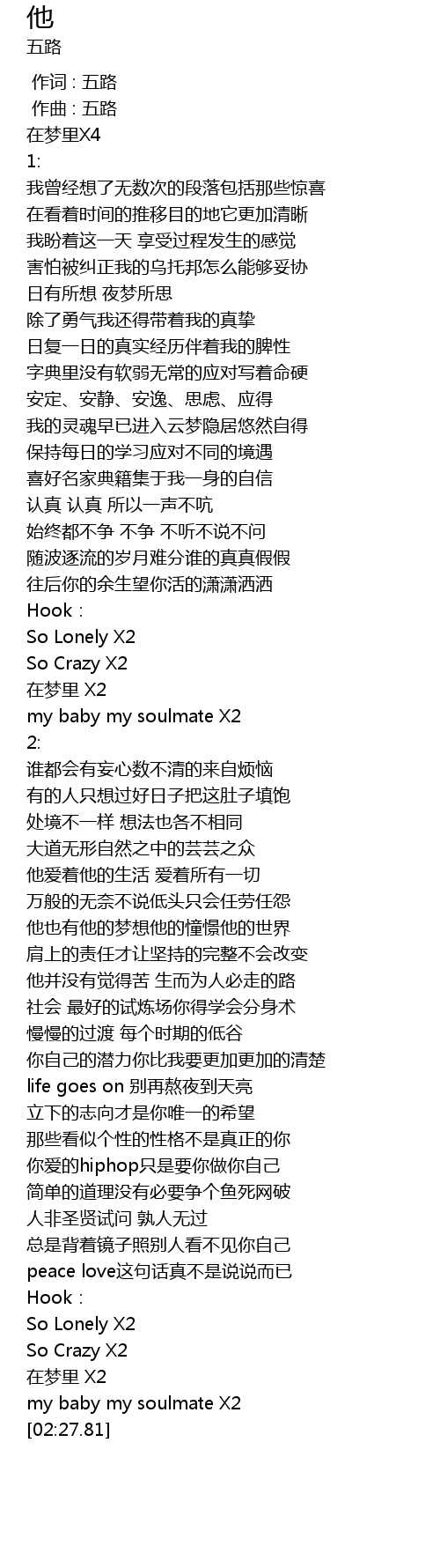 | [02:05.79] | 你爱的hiphop只是要你做你自己 |