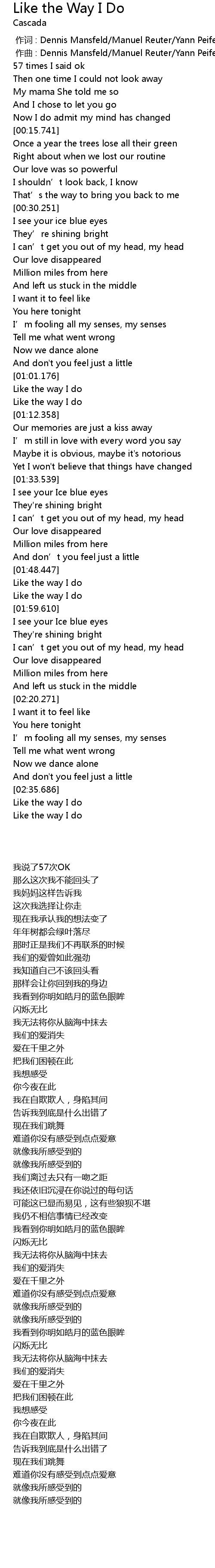 | [02:35.847] | Like the way I do |
