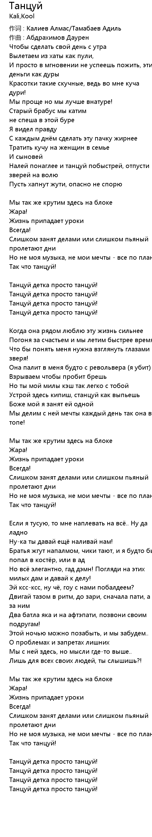 Танцуй 歌词