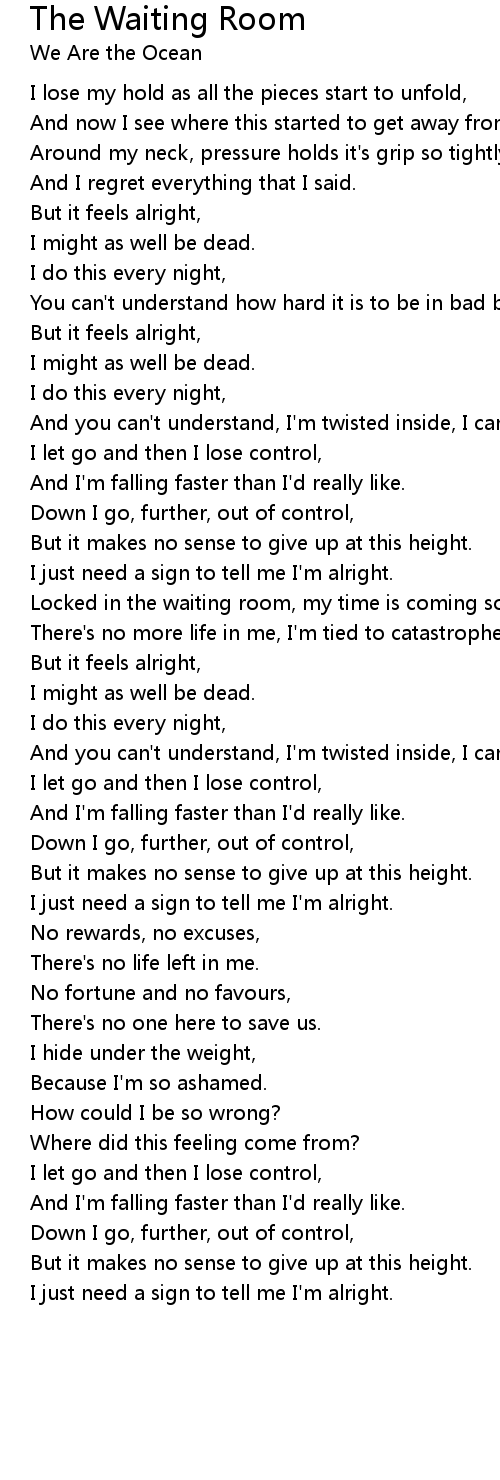 Locked in the waiting room, my time is coming soon. |