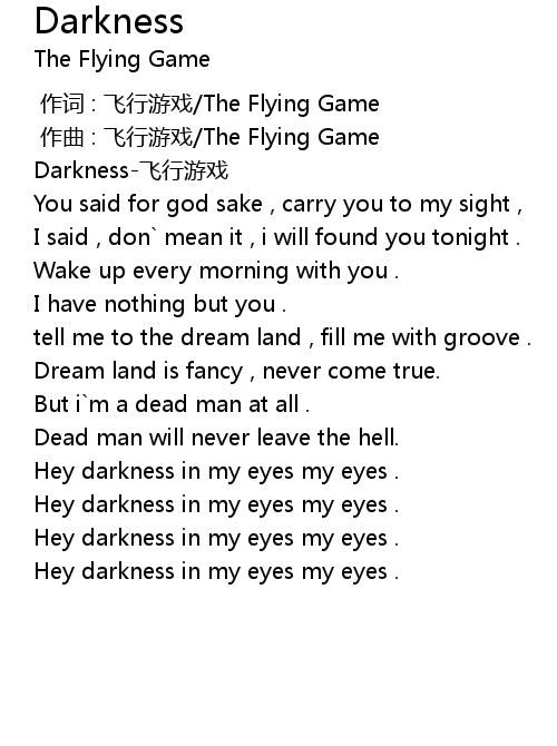 | [00:29.901] | Darkness fēi xíng yóu xì |