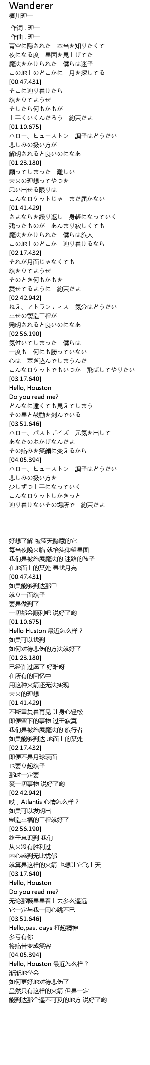 | [04:06.148] | Hello, Houston 最近怎么样? |