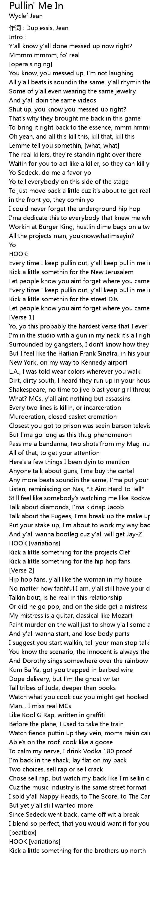 | Every time I keep pullin out, y'all keep pullin me in, sin | |