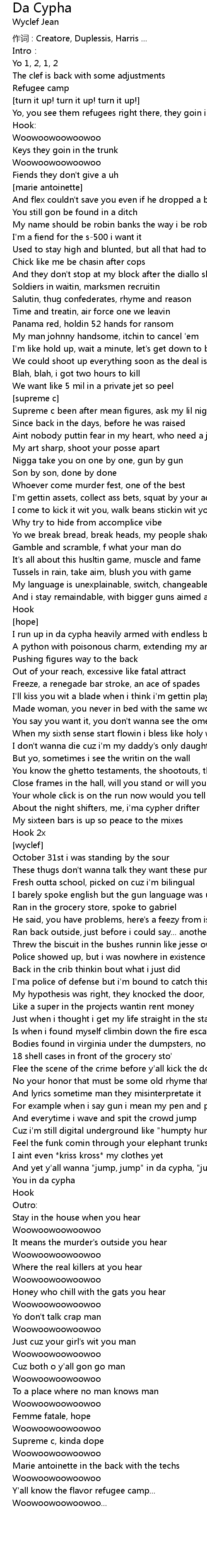 | And yet y'all wanna "jump, jump" in da cypha, "jump, jump" | |