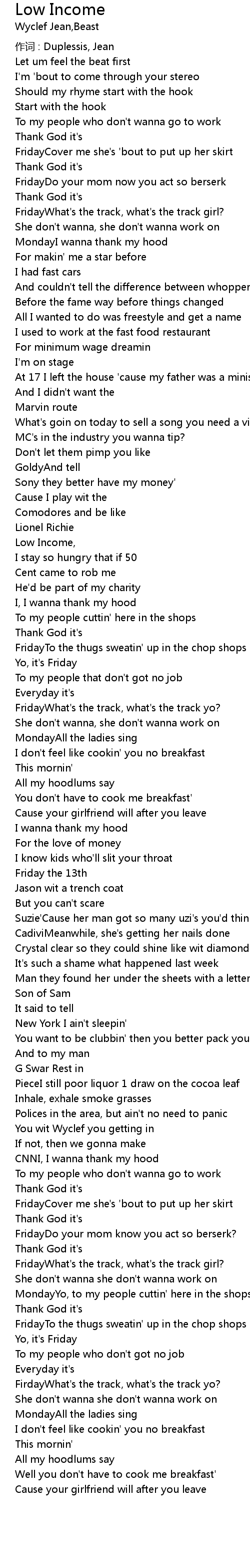 | 歌曲 | Low Income |