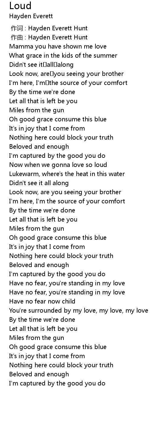 | [00:00.000] | 作词 : Hayden Everett Hunt |