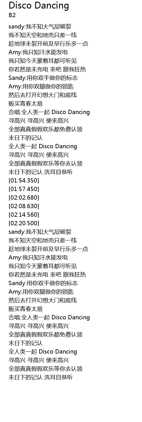 | [01:23.90] | 合唱:全人类一起 Disco Dancing |