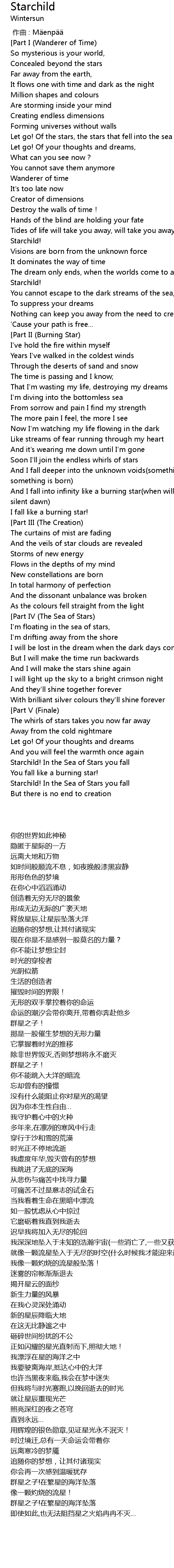 | [07:23.42] | Starchild! In the Sea of Stars you fall |