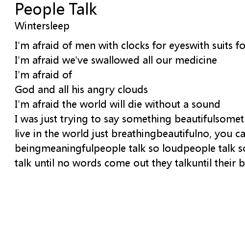 | I was just trying to say something beautifulsomething meaningfulbut you can't live in the world just breathingbeautifulno, you can't live in the world just beingmeaningfulpeople talk so loudpeople talk so loudpeople talk so loudthey talk until no words come out they talkuntil their brains fall out |