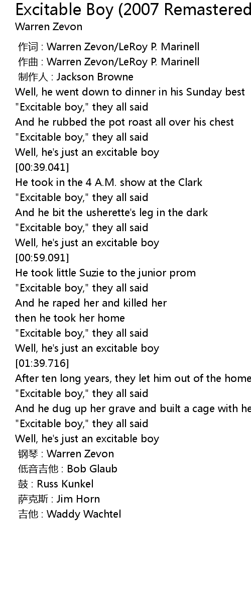 | [02:05.471] | 钢琴 : Warren Zevon |